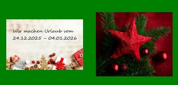 Anschließend gönnen wir uns eine Pause, in der auch keine Bestellungen möglich sind, und ab dem 05.01.2026 sind wir dann wieder wie gewohnt für Sie da!
