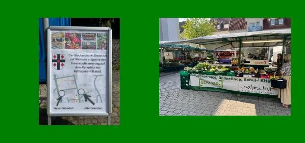 Ab sofort findet in Rüthen der Wochenmarkt am Freitagvormittag immer auf der Rückseite des Rathauses statt, bis die Innenstadt Sanierung des Wochenmarktplatzes im nächsten Jahr abgeschlossen ist. Kurzparkmöglichkeiten an der Vorbeiführenden Hachtorstrasse sind ausreichend vorhanden und auch alle innerstädtischen Cafés sind von hier gut erreichbar.